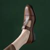 Fashion Women's new British Spring and Autumn leather cowhide metal belt buckle round toe low heeled Mary Jane shoes retro work shoes
