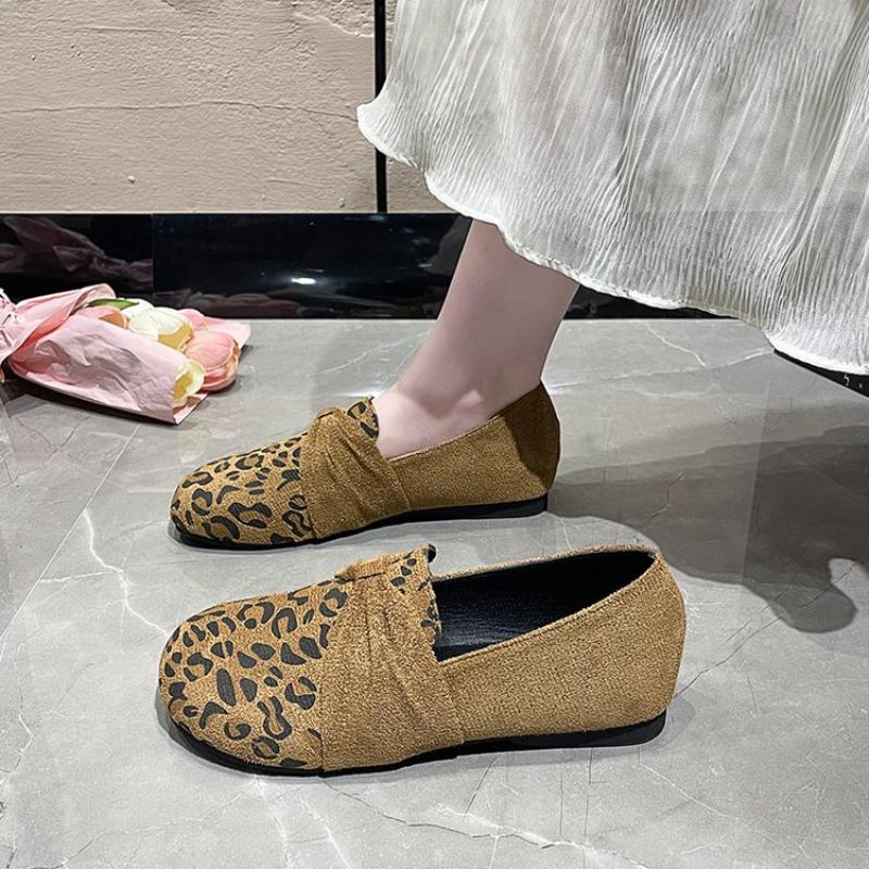 Fashion 2025 Fashion Mid Flats Walking Shoes Light Leopard Women Chunky Loafers Shoes New Hot Suede Brand Pumps Casual Round Toe Dress