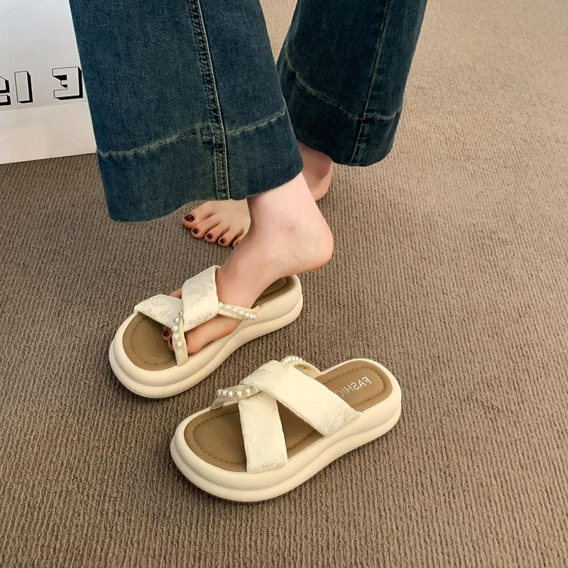 Fashion Shoes Woman 2025 String Bead Female Slippers Platform New Beach Slides Scandals String Bead House Slippers Platform Beach Shoes