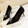 Fashion Black Suede Cloth High Heels Shoes Woman Basic Pumps 2025 Bowknot Crystal Diamond Buckle Fashion Party Sexy Women Shoes Pumps