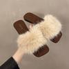 Fashion Shoes Woman 2025 Slippers Casual Low Fur Flip Flops Pantofle Winter Footwear Luxury Plush Flat New Slides Female Shoes Plush Sli