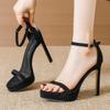 Fashion Brand Design Ankle Straps Womens Sandals 2025 New 11Cm Open Toe Platform Party Pumps Flock Leather High Heels Zapatos De Mujer