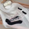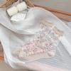 Spring/Summer Floral Lace Mid-Calf Socks - Women's Thin, Anti-Snag, Breathable, Transparent Cotton with Small Flower Design.