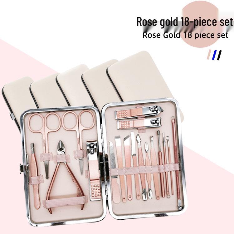 Rose Gold 18-Piece Stainless Steel Manicure Set - Nail Clippers & Art Tools