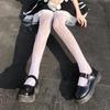 Černé a bílé lolitkovské síťované punčochy s růží - Zeštíhlující nohy, styl romper, se stupačkou, na jaro a podzim