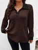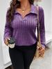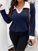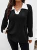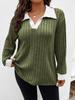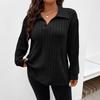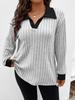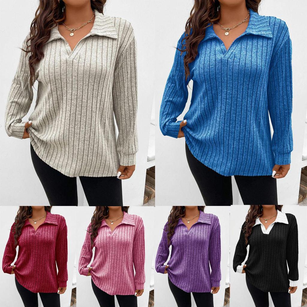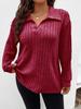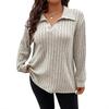 2025 Autumn/Winter Women's Plus Size V-Neck Ribbed Brushed Long Sleeve Top