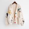 Šik podzimní/zimní 2023 volný pletený kardigan s výšivkou písmen pro ženy
