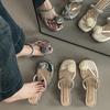 French fairy wind flower rhinestone thick heel slippers female summer wear 2025 summer new with skirt versatile sandals
