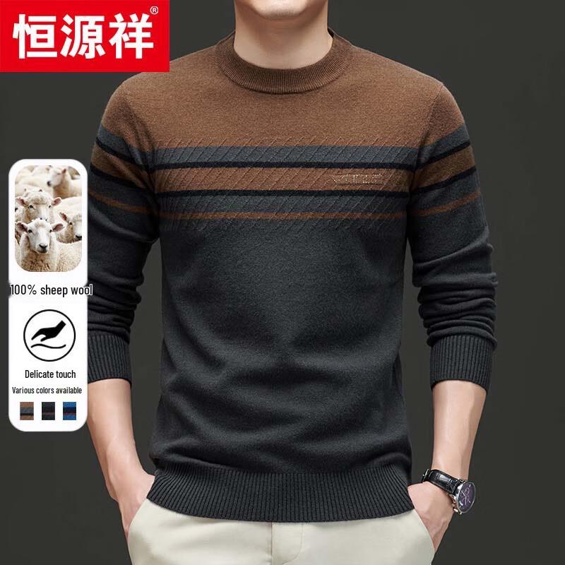 Hengyuanxiang Men's 100% Wool Round Neck Knit Sweater