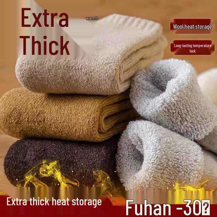 Unisex Warm Wool Mid-Calf Terry Socks - Solid Color Autumn/Winter Style
