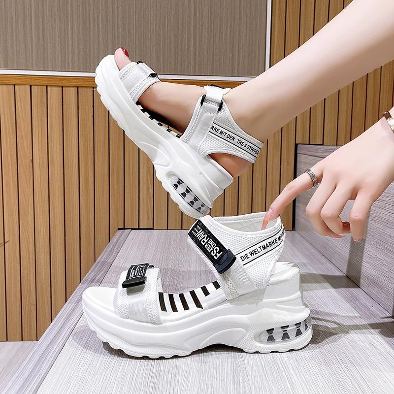 Slope heel platform sandals women's 2025 summer new one-word Velcro waterproof table fashionable versatile beach women's sandals