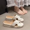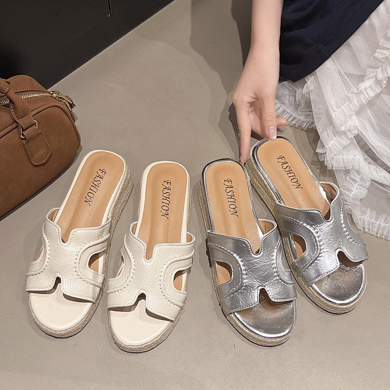 Woven thick-soled slippers for women's outerwear 2025 new models with skirts, foreign-style fashionable silver wedge heels, cool slippers for going