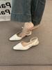 Low-heeled bag head sandals women's French gentle evening nude pointed head small fragrant style lady thick heel empty temperament single shoes