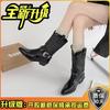 Fashion versatile woven hollow short boots retro western cowboy boots women's old brown pointed boots knight boots