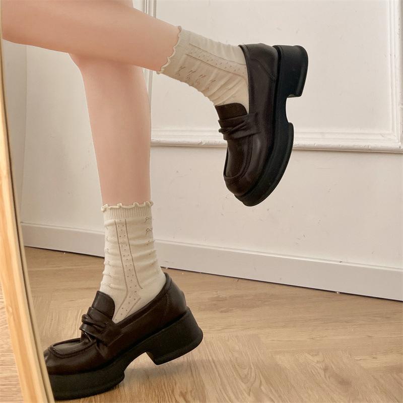 British style platform small leather shoes women's shoes spring and autumn fashion versatile height increase single shoes black one-pedal thick heel