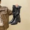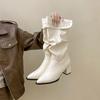 Piaohong retro style Spice Girl pointed head pleated rivet boots women's 2025 autumn and winter new versatile knight boots fashion boots