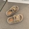Mao Mao slippers women's wear 2025 autumn and winter new Korean version of one-word slippers fashion belt buckle plush cotton slippers