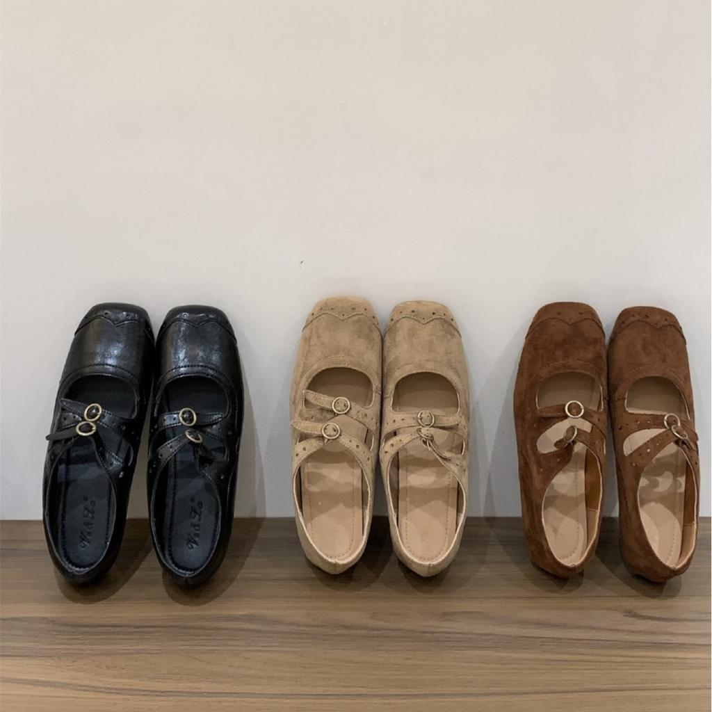 Retro brown square head Mary Jane shoes ballet shoes women's 2025 autumn new Korean version French light mouth single shoes
