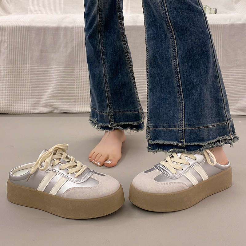 Baotou slippers women's 2025 new summer outer wear one pedal white shoes thick soles without heel half drag German training shoes