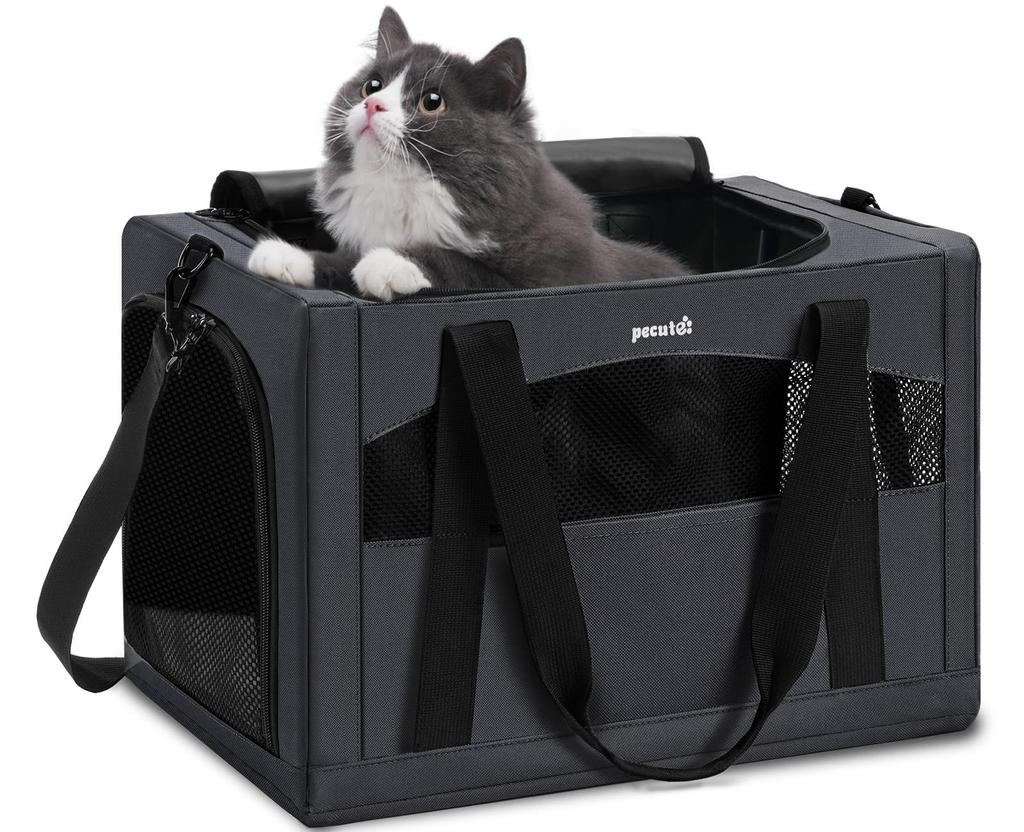 Pecute Pet Cat Carrier Shoulder Bag for Small and Small Foldable Ideal for Hospital Disaster and Dark Gray Carrier, Bag, Handbag, Cats, Rabbits, Dogs,