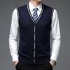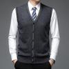Pánská vlněná vesta se středním věkem s výstřihem do V: Pletený kardigan, Bezrukávový svetr z čistého kašmíru na podzim a zimu.