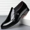 These men's shoes feature a sleek, British-inspired design that effortlessly bridges the gap between business and casual attire. With a pointed toe and double buckle detail, they offer a sophisticated flair suitable for both the office and social settings. The shiny leather exterior exudes elegance, while the rubber sole ensures durability and comfort. Inside, the artificial leather insole provides a cushioned feel, making these shoes a stylish and practical choice for any modern man.