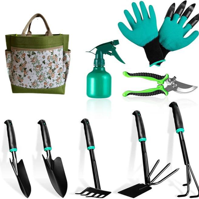 9dílná hliníková sada zahradního nářadí s dvoubarevnými rukojeťmi