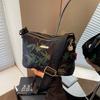 New bamboo leaf printed commuter bag women's high-end sense contrasting color small square bag fashionable casual simple messenger bag