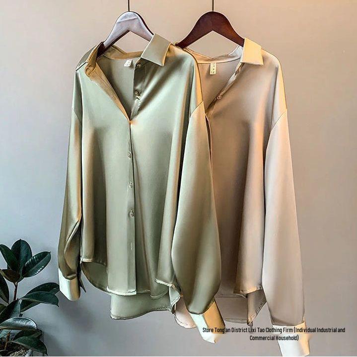 Women's Retro Hong Kong Style Satin Shirt - Versatile Long Sleeve for Spring & Autumn (2023)