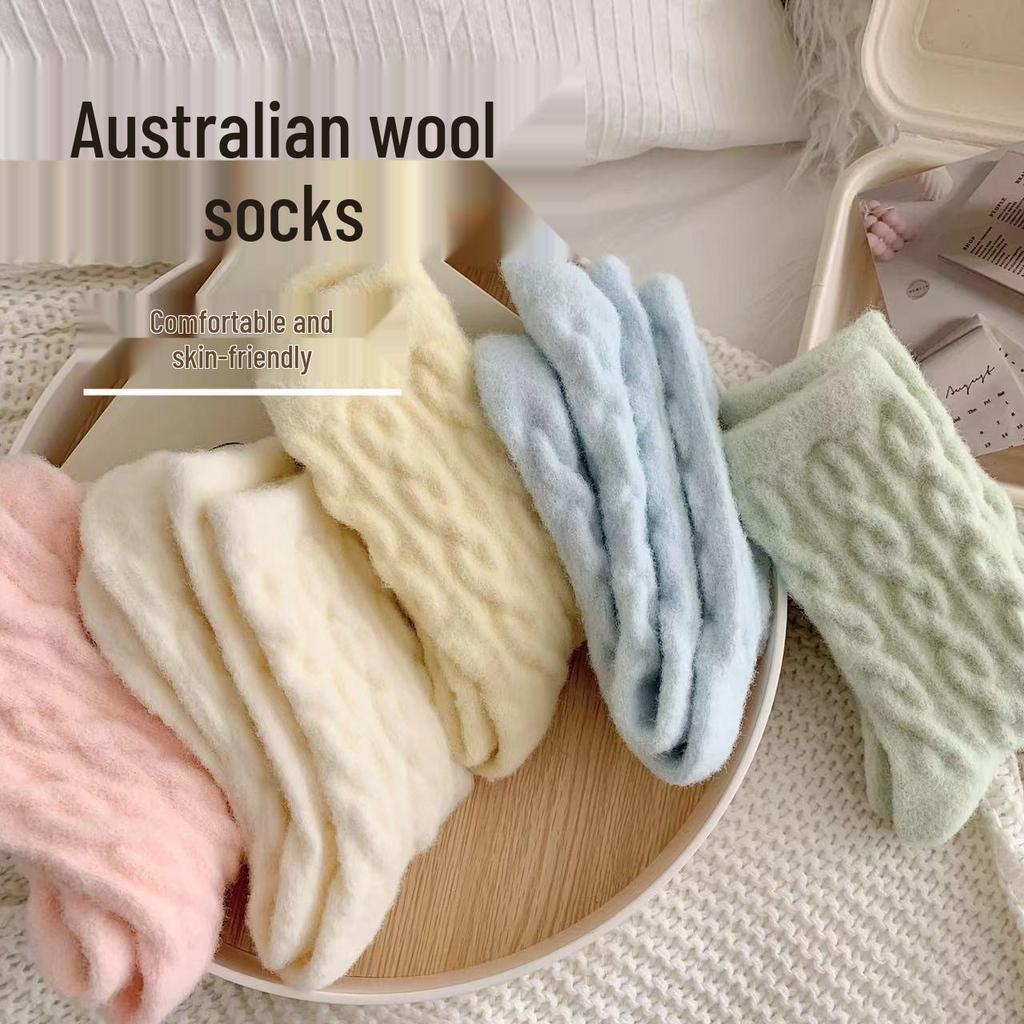 Dámské vlněné podkolenky: Silný teplý kabelový úplet v jednobarevných bonbónových barvách pro podzim/zimu