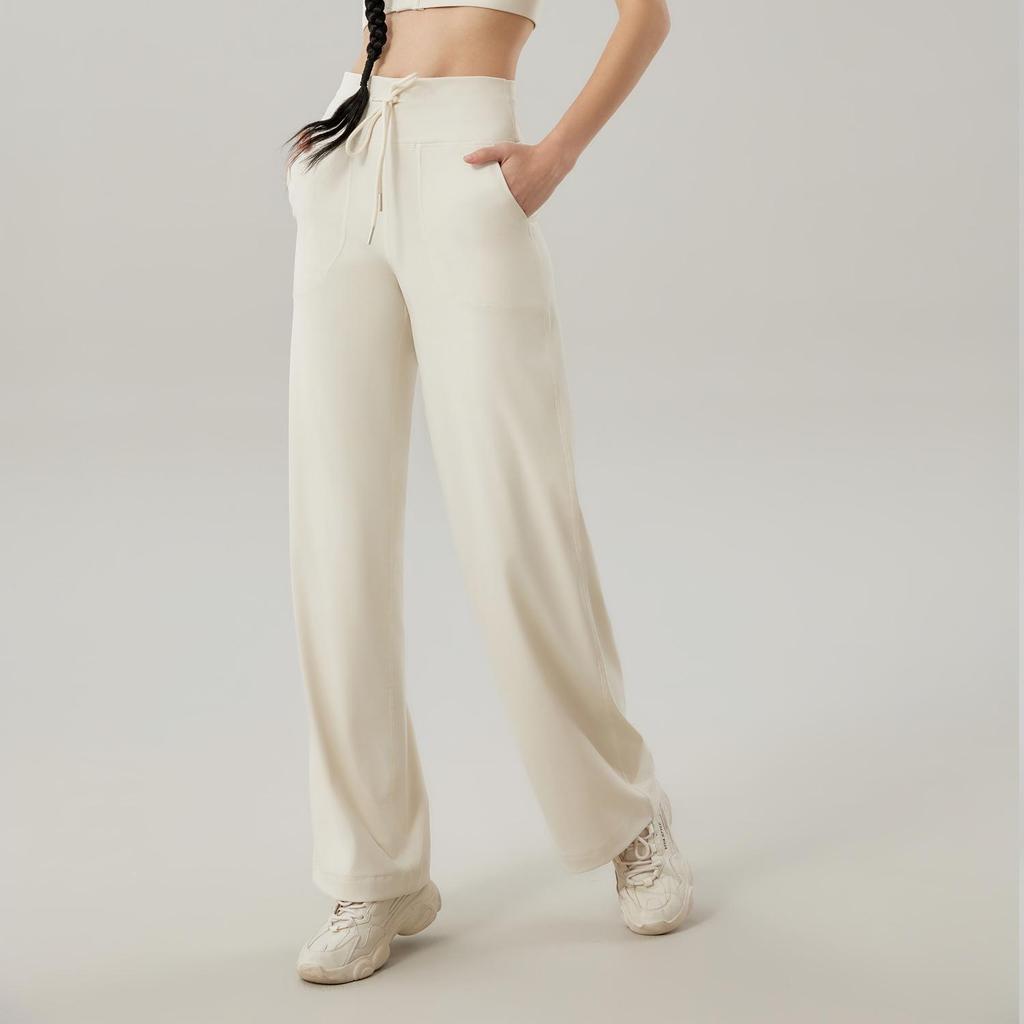 Dámské široké kalhoty se stahovací šňůrkou na jógu a fitness - Volné, ležérní a zeštíhlující design s rovnými nohavicemi
