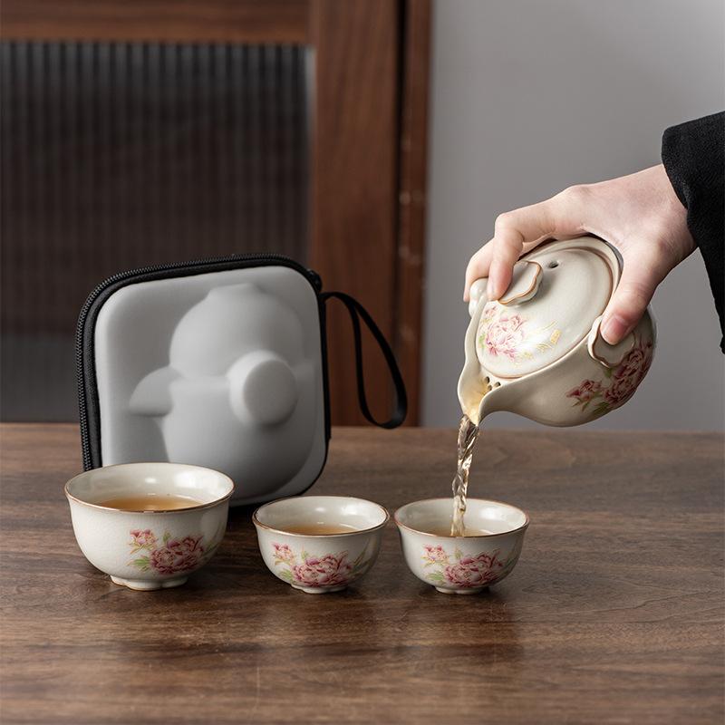 Ru kiln high-end open-piece travel tea set, one pot, three cups, outdoor portable light luxury company business commemorative gift