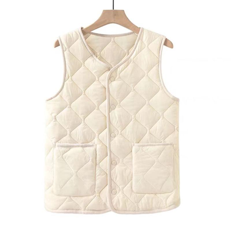 Nová vesta podzimní a zimní péřová bavlněná vesta kostkovaná kulatý výstřih dvojitá kapsa kapsa velká velikost outfit pro matku