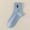 Women's Spring and Summer Cat Embroidered Macaron Colored Mid Calf Cotton Socks
