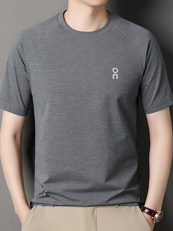 Introducing a stylish and versatile top designed for the summer season. This men's short sleeve T-shirt features a comfortable round neckline and is crafted from breathable polyester fiber, ensuring a lightweight and cool feel. The T-shirt is embellished with a letter decoration, adding a touch of contemporary flair. It's an ideal choice for middle-aged individuals seeking a fashionable yet casual look. Perfect for a variety of occasions, this top blends comfort and style effortlessly.