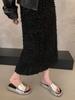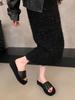 Small man increases height, thick-soled cool slippers, women's shoes wear 2025 new summer leopard print muffin bottom one-word slippers