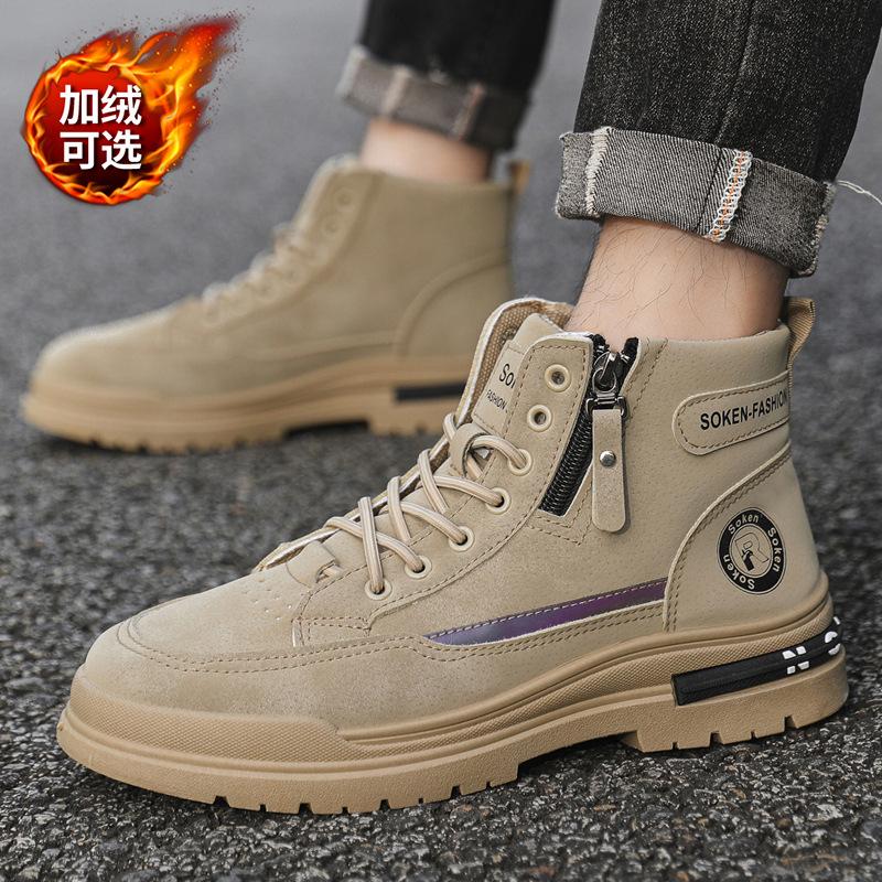 2025 winter velvet thickened warm high-top Martin boots fashion trend men's shoes to work outdoor work shoes soft sole