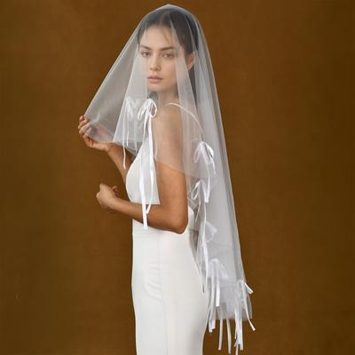 Elegantní svatební obřad Svatební závoj Jednovrstvý Mašle Svatební závoj Zásnubní událost Závoj Nevěstin závoj Ozdoba hlavy
