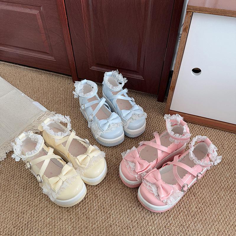 Sweet and cool muffin platform small leather shoes women's 2025 new summer Japanese bow Mary Jane lolita single shoes