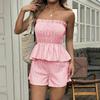 Summer Solid Color Ruffles Folds Elastic Tube Top Loose Casual Fashion Shorts Set Female Waist Sexy Suit
