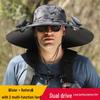 Rybářský klobouk se širokou krempou na solární pohon se sluneční clonou, ventilátorem s baterií s dlouhou výdrží a vysokým výkonem větru pro muže.