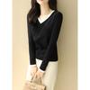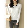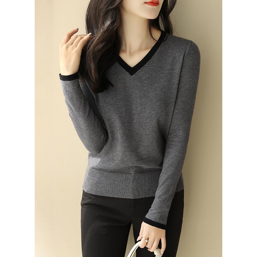 Women's Spring and Autumn Long-sleeved V-neck Knitted Colorblocking Pullover Sweater Long-sleeved Slim Bottoming Shirt