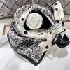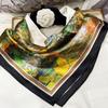 green Women 100% Mulberry Silk Scarf For Hair Headscarf Spring Fall Elegant Floral Small Silk Square Neck Scarves Neckerchief