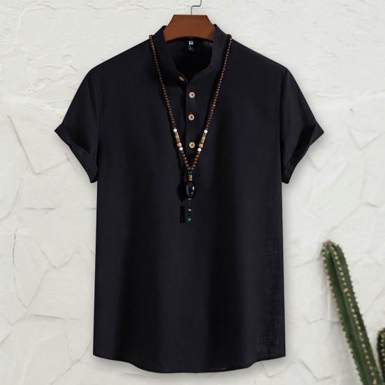 Košile má stojatý límeček, jednobarevná, volný střih a zapínání na knoflíky a je speciální a stylová, snadno se hodí k plážovým kalhotám, džínům, šortkám, ležérním kalhotám, kalhotám k obleku, takže vyniknete a budete temperamentnější.