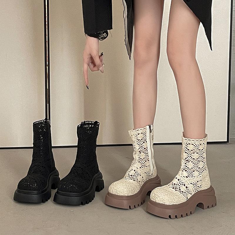 Korean version of thick-soled exquisite lace mesh cool boots autumn and winter fashion fairy style design sense hollow women's Martin boots