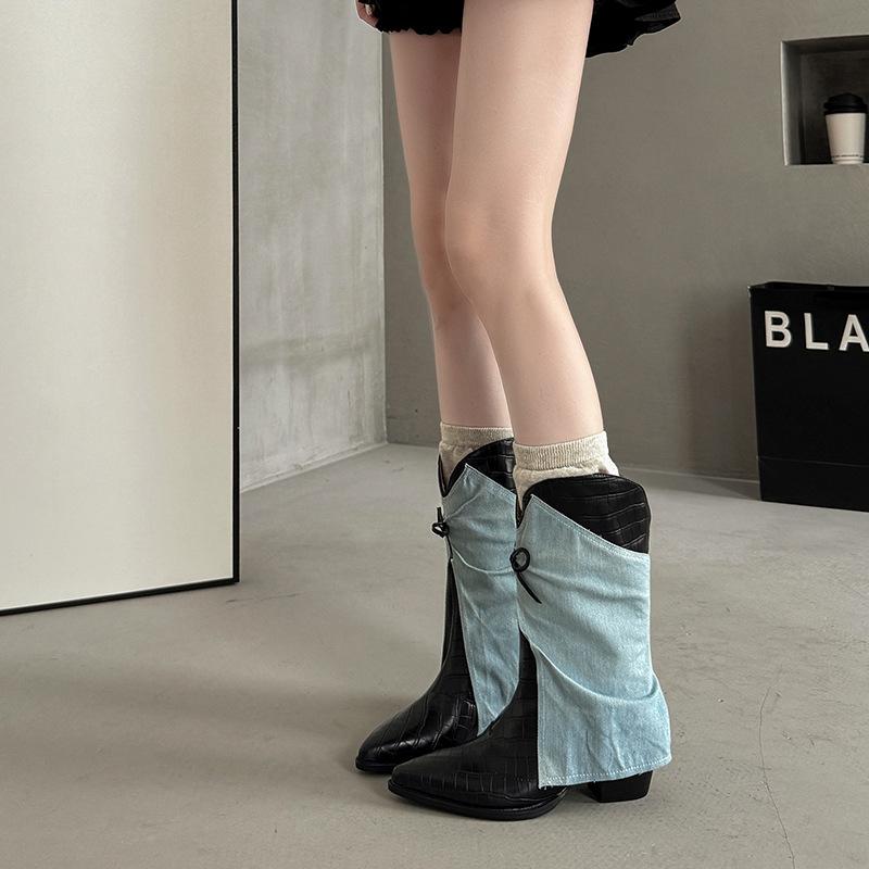 Niche bow western cowboy boots women's fashion Korean version design sense color matching short boots trouser tube fashion boots Martin boots