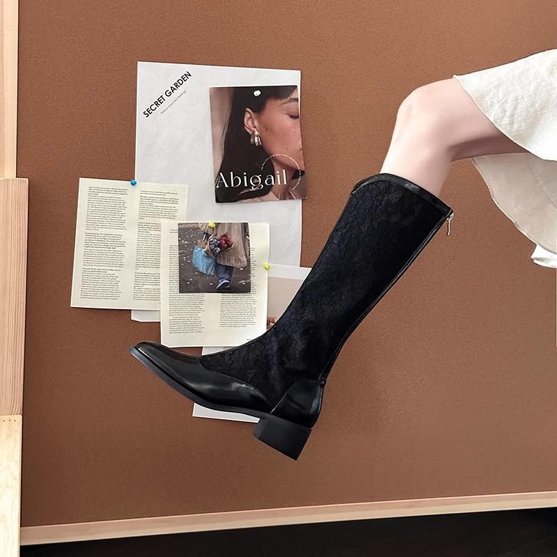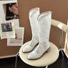 Úzké vysoké chladné boty Dámské letní duté síťované boty Střední podpatek Prodyšné westernové kovbojské boty Dlouhé dámské římské sandály