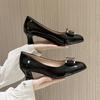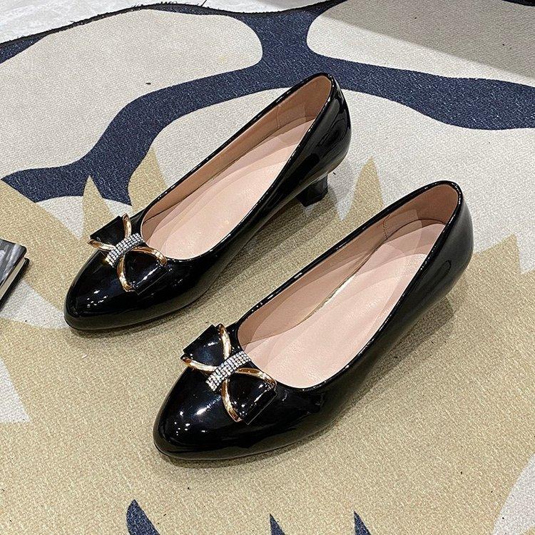 Medium heel single shoes women's 2025 autumn new work shoes rhinestone metal buckle butterfly large size daily wear shallow mouth