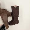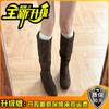 2025 new fashion splicing casual round head knight boots women's autumn and winter retro European and American height-increasing and thin fashion