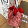 Reversible Red & White Gingham Tote Bag for Women Large Capacity, Lightweight, with Fixed Shoulder Straps, Perfect for Everyday Use, Shopping,Handbag